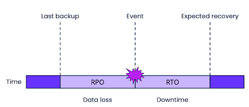 After an outage, organizations will often analyze the damage and determine the Recovery Point Objective (RPO) and Recovery Time Objective (RTO). These two metrics represent how much data was lost and how long your transactional system was unavailable.