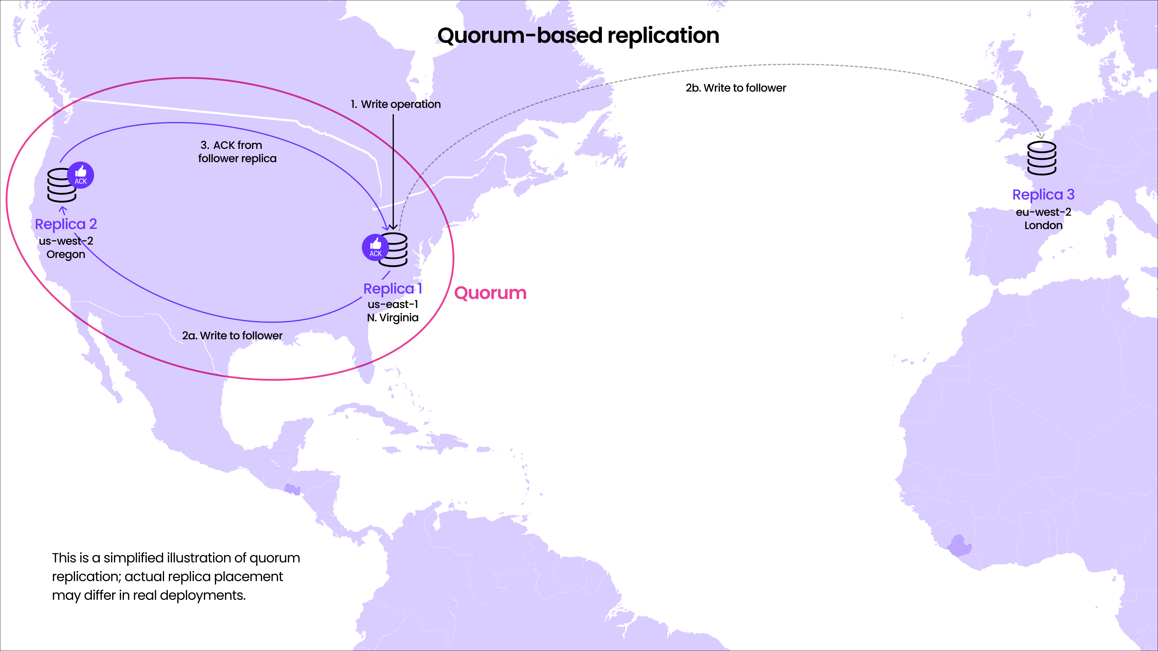 Why use quorums? The answer lies in availability and durability. Unlike legacy replication methods that often rely on updating a single primary replica or waiting for all replicas to catch up — making them vulnerable to data loss or downtime if that replica fails — quorum-based replication ensures durability and availability by requiring a majority of replicas to acknowledge a write, thereby enabling the system to tolerate individual node failures while maintaining consistent and reliable operations.