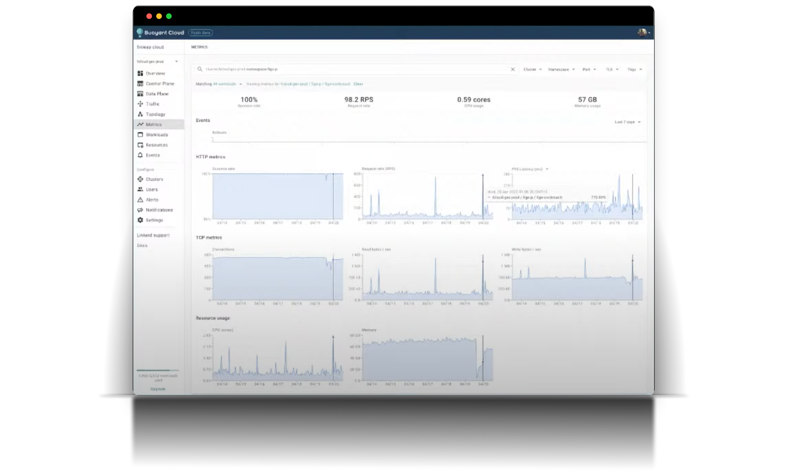 They are also leveraging Buoyant Cloud, the cloud management product for Linkerd, so they don’t have to worry about management. It provides these metrics on their cluster performance: