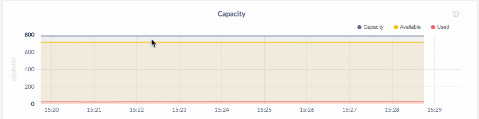| Capacity Used | The storage capacity used as a percentage of total storage capacity allocated across all nodes. |