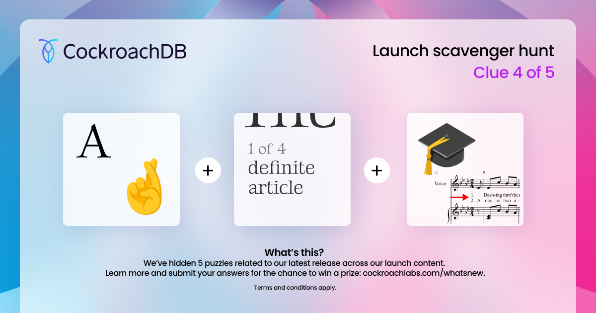 On June 7th at 1pm EST we’d love for you to join Product Management Directors, Lakshmi Kannan and Andy Woods, to learn about the new features and capabilities we’ve added to CockroachDB, including: